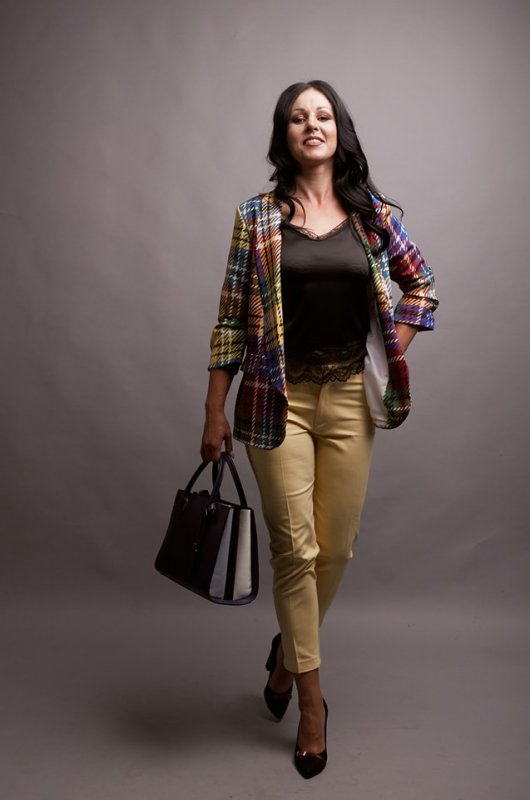 Динамічний та яскравий образ в стилі casual. В ньому можна піти практично куди завгодно! Цікавий піджак з різнокольоровою клітинкою підніме настрій не лише вам, а й тим, хто буде вас розглядати.