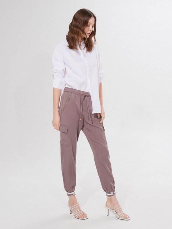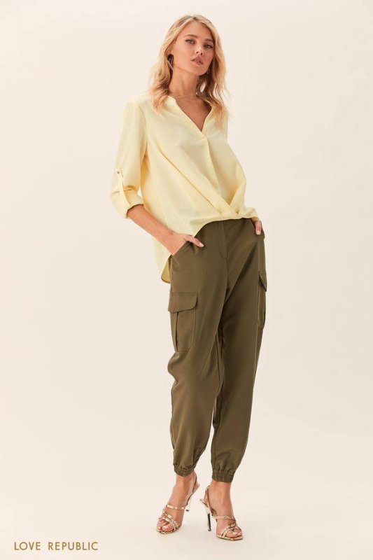 Для створення ефектного образу, можна поєднати штани-карго з мереживними блузами або топами з рукавами ліхтариками.