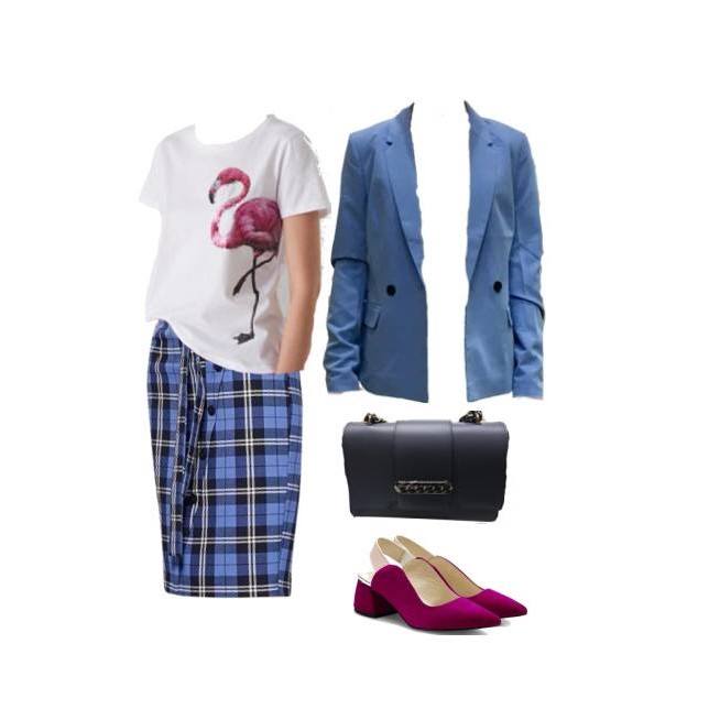 Динамічний та яскравий образ в стилі casual. В ньому можна піти практично куди завгодно! Цікавий піджак з різнокольоровою клітинкою підніме настрій не лише вам, а й тим, хто буде вас розглядати.