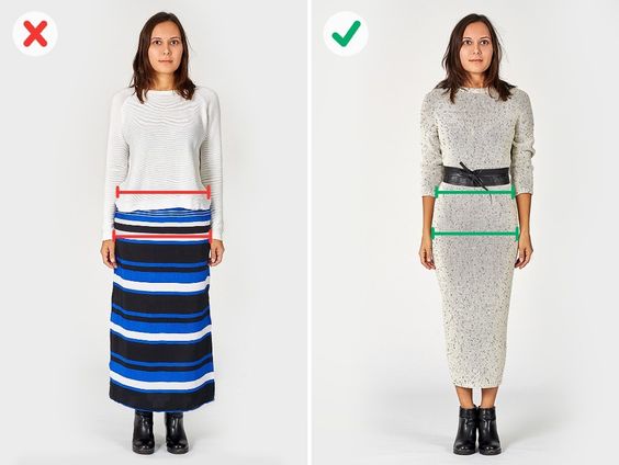 Невідповідна довжина одягу змінює фігуру, візуально вкорочує ноги, подовжує тулуб, додає пару розмірів.